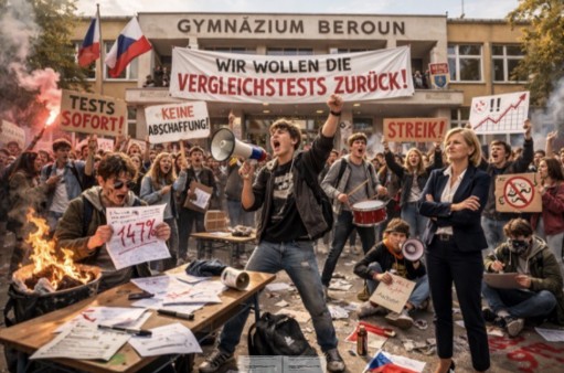 Prezentace / Studenti němčiny v roli investigativních novinářů letos dokázali, že apríl se dá oslavit opravdu stylově – a ještě k tomu vzdělávacím způsobem. / autor: prager / vloženo: dub 1, 2026