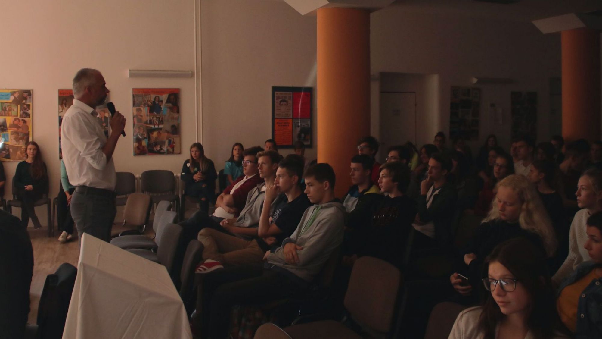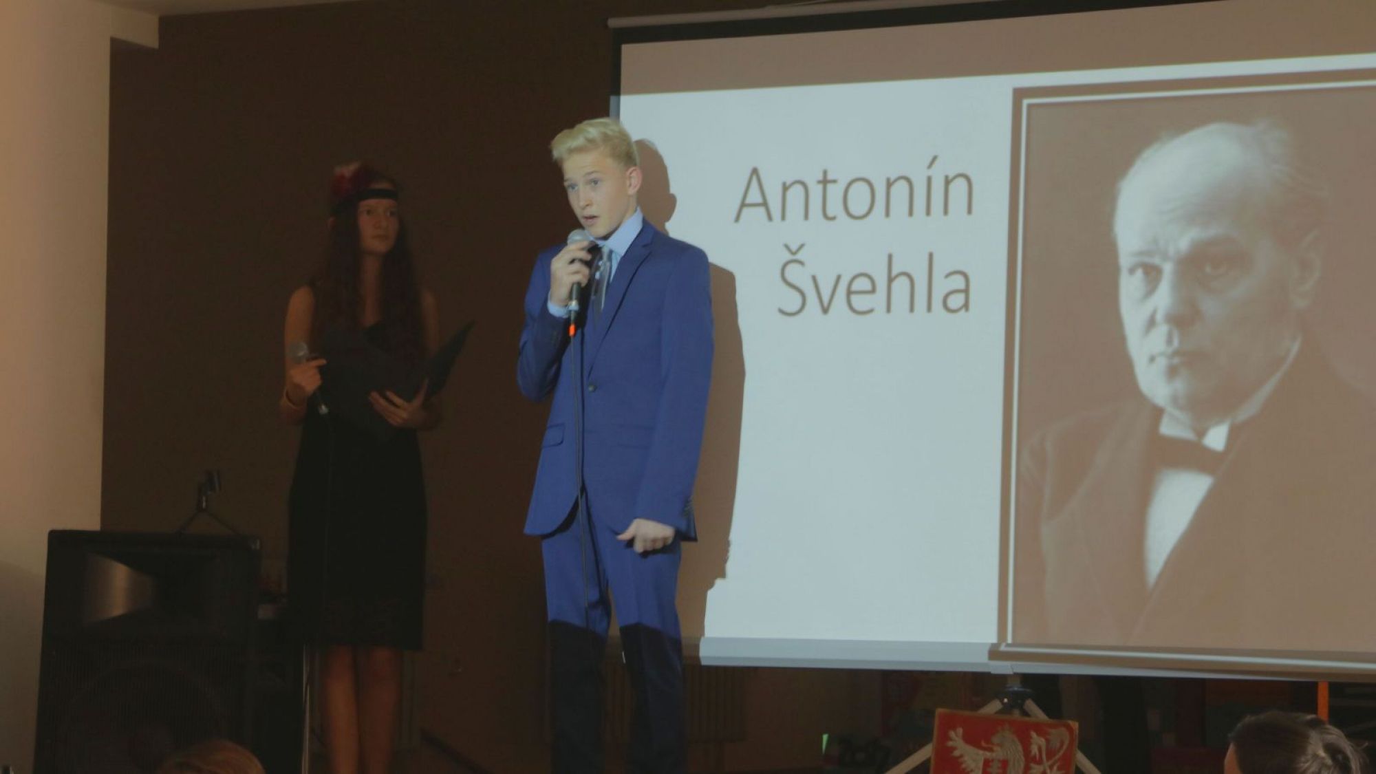Matyáš Levíček (kvarta) fotografoval ve středu, 17. října na školním shromáždění ke 100 letům republiky.